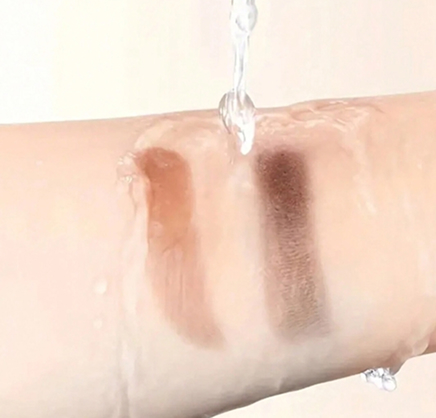 Не розмазується під дощем або в спеку, тримається цілий день, не залишає слідів на руках чи одязі, легко змивається звичайним шампунем.